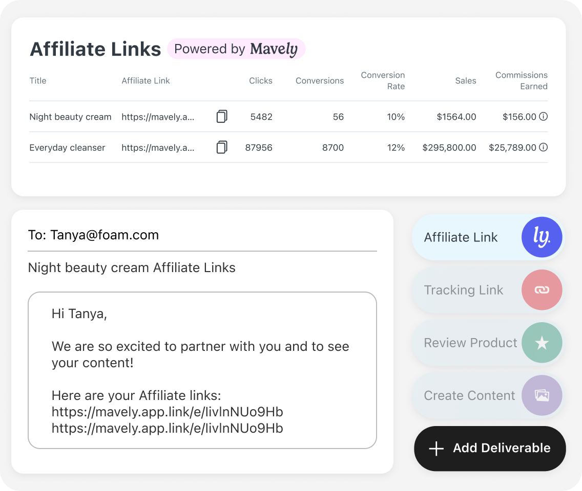 Mavely is Later’s affiliate platform, empowering creators to monetize their content by promoting the world’s favorite brands and helping brands prove the impact of their influencer marketing campaigns. Mavely provides advanced affiliate marketing capabilities including link generation, tracking, and automated payments.