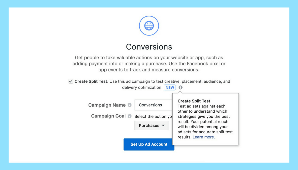 The split test feature on Facebook ads is a great tool to compare content types and their effect on ecommerce ads. In a split test, you can compare creative, copy, and audience segments for a particular set of two ads.