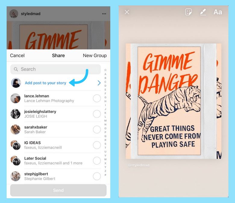 Whereas in the past there was no direct way to repost other people’s Instagram Stories, this new feature makes it easy to do!