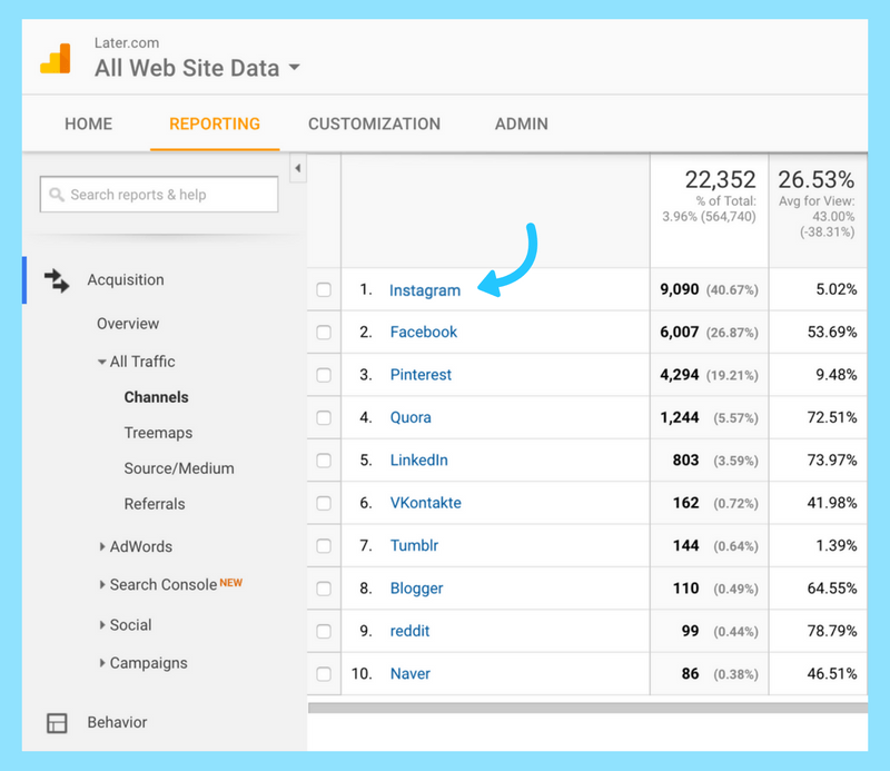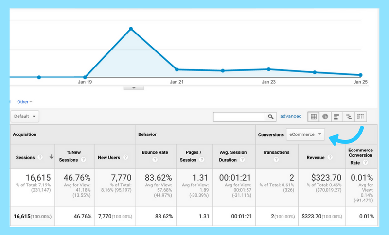 Once you’re set up with ecommerce tracking in Google Analytics, you can head over to your Google Analytics report to see how many sales you’ve generated from Instagram!