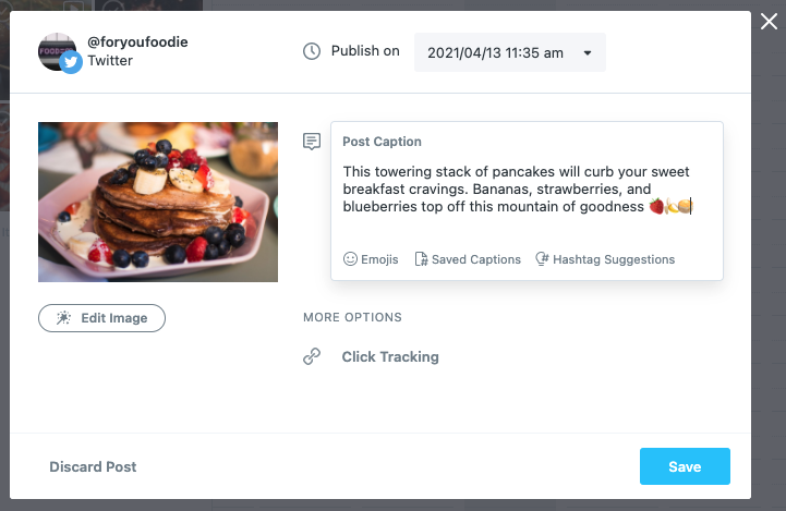 Plus, Later has tons of helpful features to make the whole process quicker and easier. With Saved Captions and Hashtag Suggestions, staying active on Twitter is a breeze.