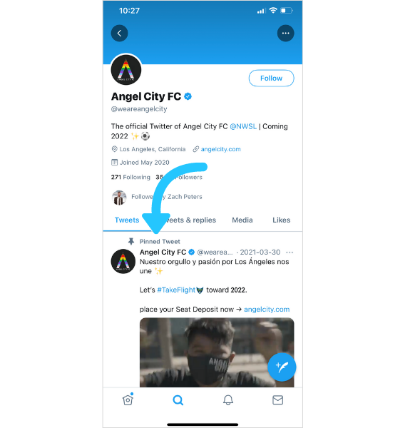Take NWSL team Angel City FC. Their demographic includes Spanish-speaking followers, and their pinned Tweet reflects that: