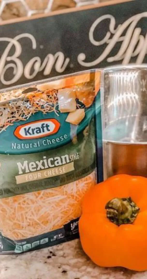 A bag of Kraft Mexican shredded cheese and a pepper