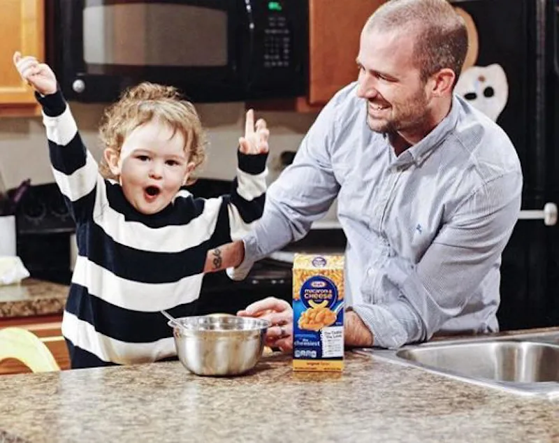 Image of a father and child eating Kraft mac and cheese